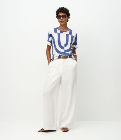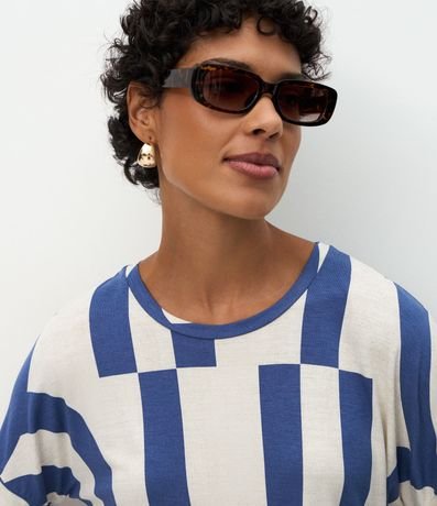 Ref: Blusa feminina confeccionada em viscose mais sustentável. Possui modelo regular, gola redonda, mangas curtas e estampa abstrata por toda a peça.