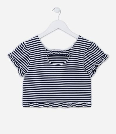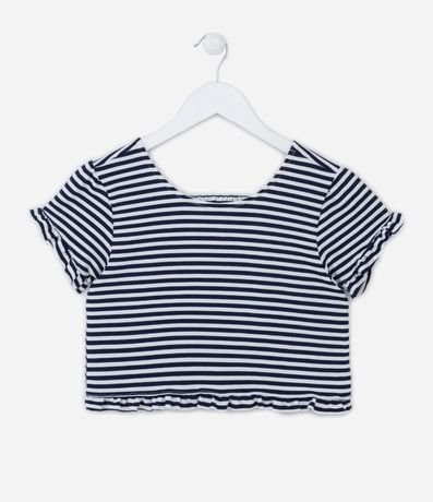 Blusa Manga Curta Infantil com Babadinhos e Estampa Listrada - Tam 5 a 14 Anos