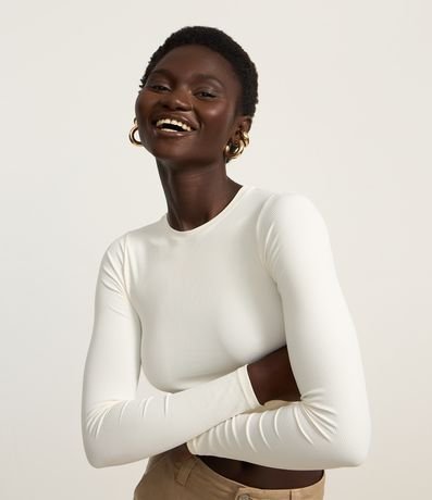 Blusa manga longa, leve textura, sem estampa e confeccionada em ribana de malha geladinha.