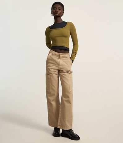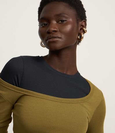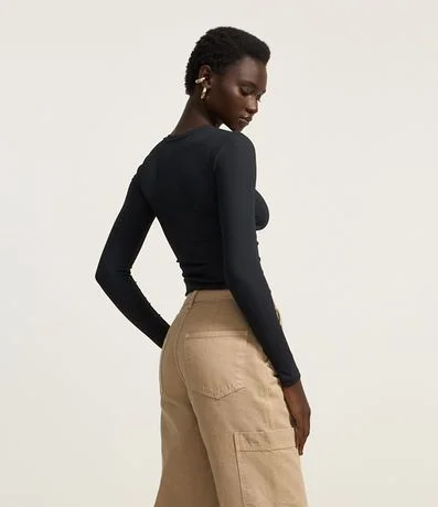 Ref: Blusa manga longa, leve textura, sem estampa e confeccionada em ribana de malha geladinha.