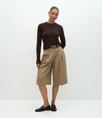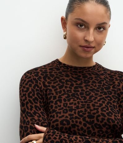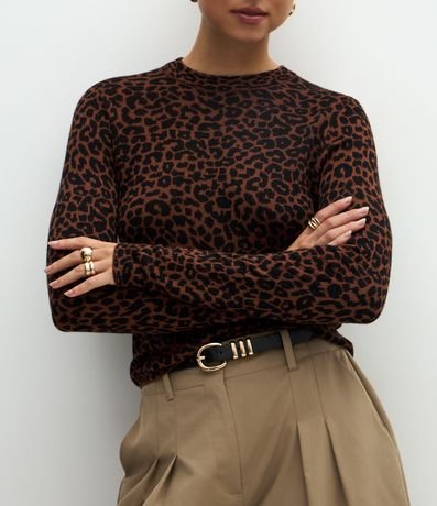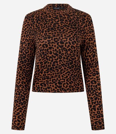 Blusa Manga Longa em Tricô com Estampa Animal Print