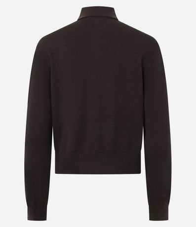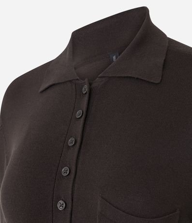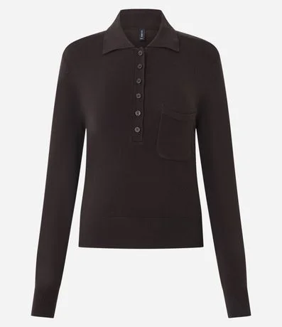 Blusa Manga Longa em Tricô com Gola Polo e Bolso Frontal