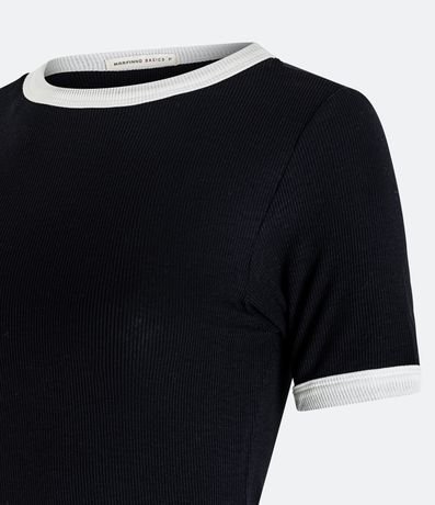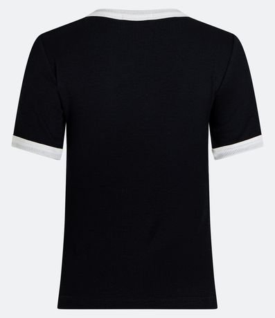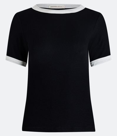 Ref: Blusa em meia malha com mangas curtas e detalhes contrastantes na gola e nas mangas,