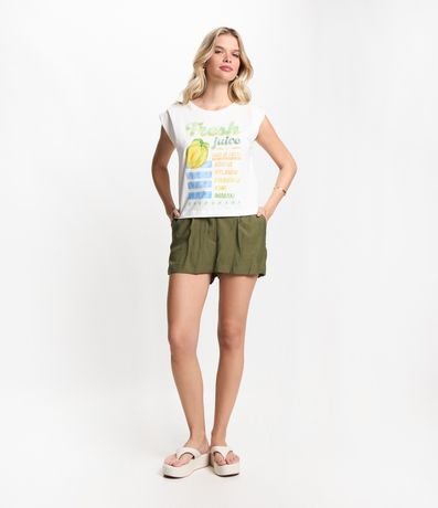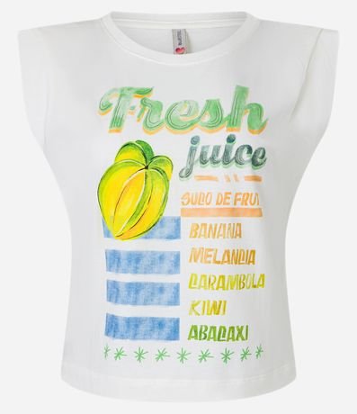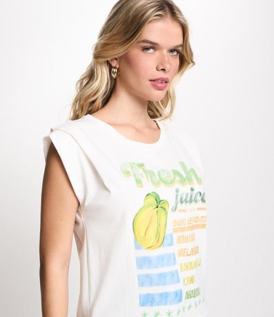 Ref: Blusa muscle tee sem manga, confeccionada em algodão mais sustentável e com estampa frutas tropicais.