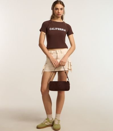 Ref: Blusa new t-shirt com manga curta, confeccionada em algodão bci mais sustentável e estampa frontal em lettering, California.