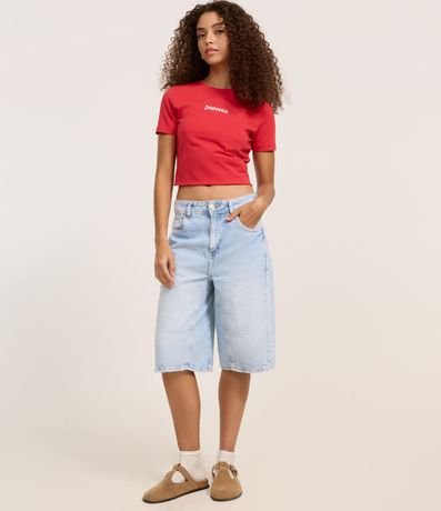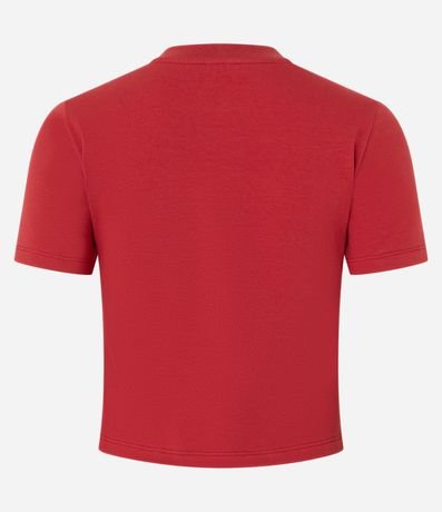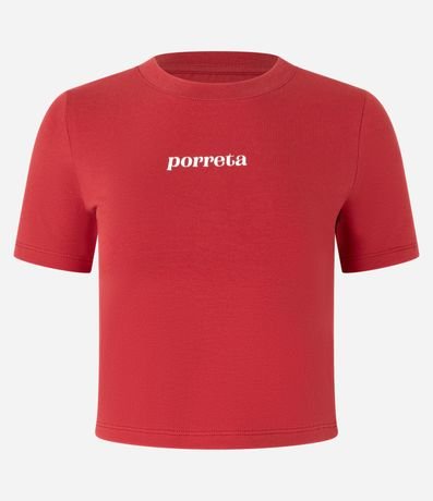 Blusa new t-shirt com manga curta, confeccionada em algodão bci mais sustentável e estampa em lettering Porreta.
