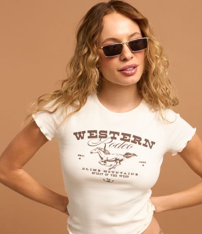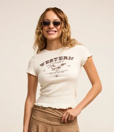 Blusa new t-shirt com manga curta, confeccionada em ribana e com estampa frontal Western.