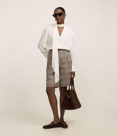 Blusa Office Wear Acetinada com Gola Laço