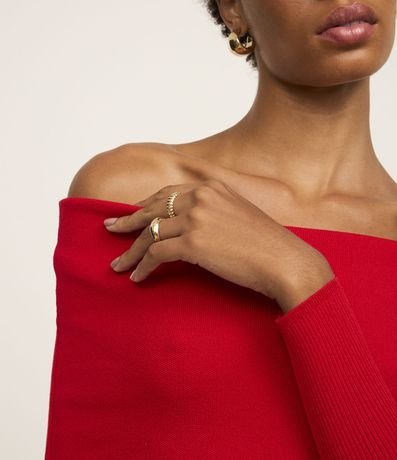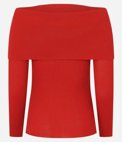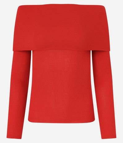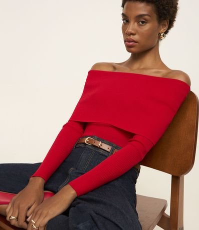 Blusa de mangas longas confeccionada em tricô leve com decote ombro a ombro virada além de mangas longas e textura canelada.