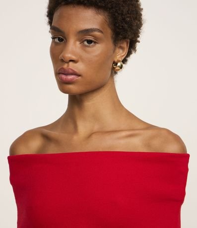 Blusa Ombro a Ombro em Tricô Canelado com Decote Virado