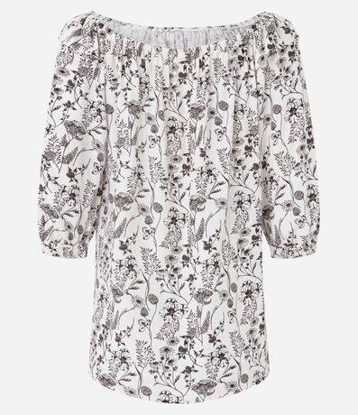 Blusa Ombro a Ombro em Viscolinho com Estampa Raminhos