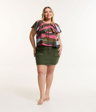 Blusa Ombro a Ombro em Viscose com Babado Curve & Plus Size