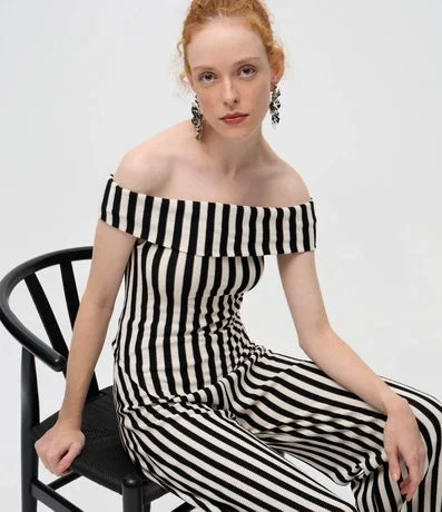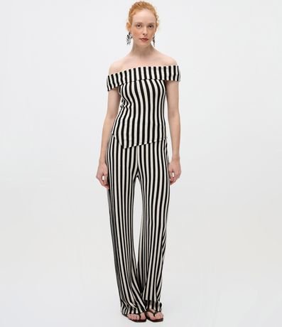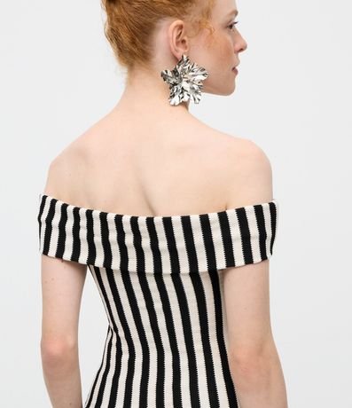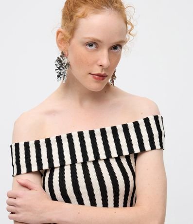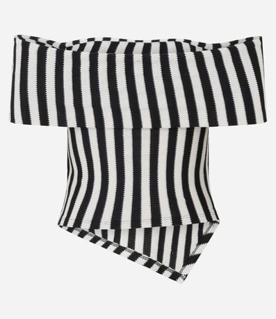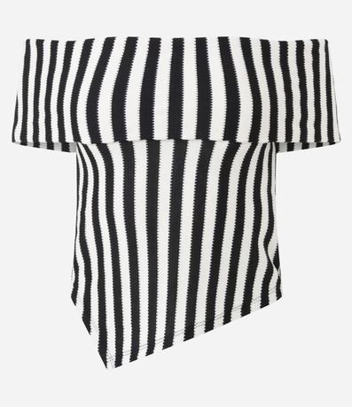 Blusa Ombro a Ombro Super Curta com Listras Texturizadas