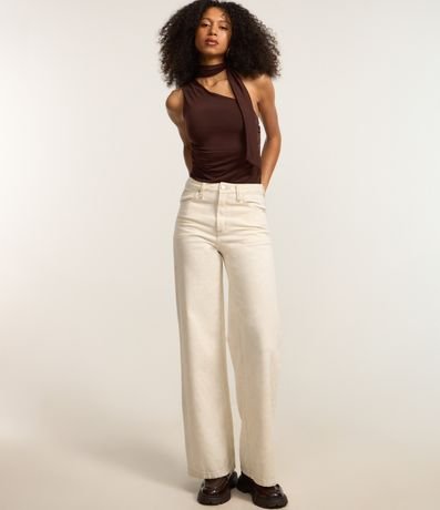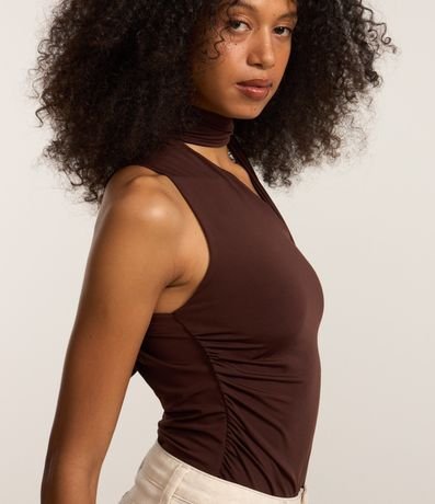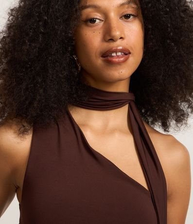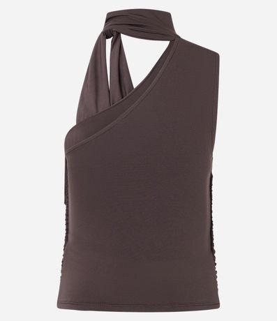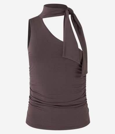 Ref: Blusa feminina de modelo ombro único, com gola alta e laço para amarração. Possui franzidos laterais.