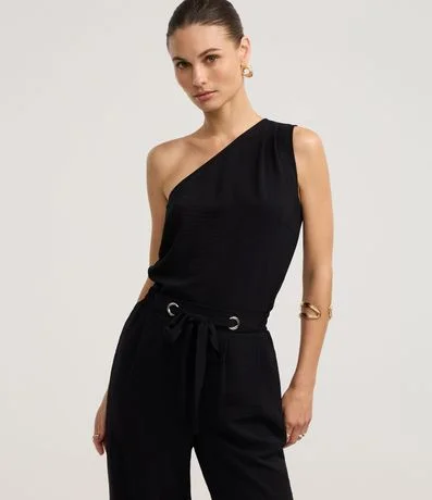 Ref: Blusa sem manags, confeccionada em airflow, com decote ombro único e franzido no ombro.