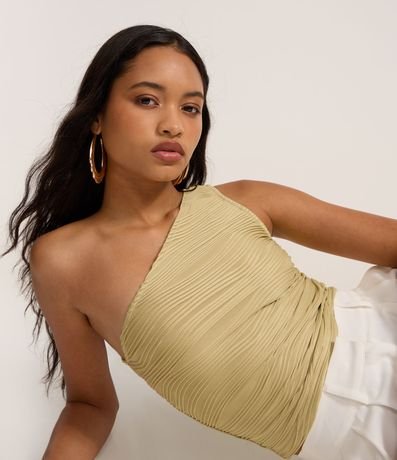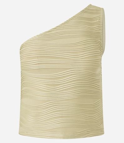 Blusa sem mangas, confeccionada em jersey, com decote ombro único e listras horizontais.