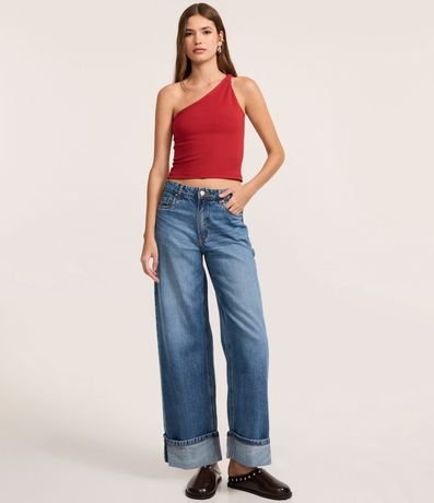 Ref: Blusa feminina sem estampa, confeccionada em ponto roma, com decote de ombro único e detalhe de alça torcida.
