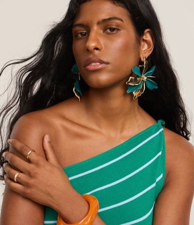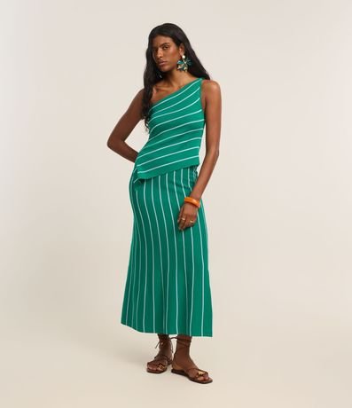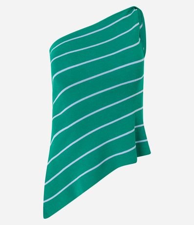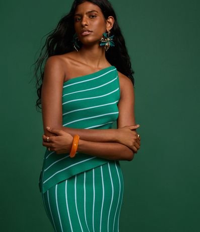 Ref: Blusa slim sem mangas, confeccionada em viscose, com decote ombro único e barra assimétrico. Possui listras diagonais. Este produto possui viscose certificada em sua composição, sendo ambientalmente mais responsável.