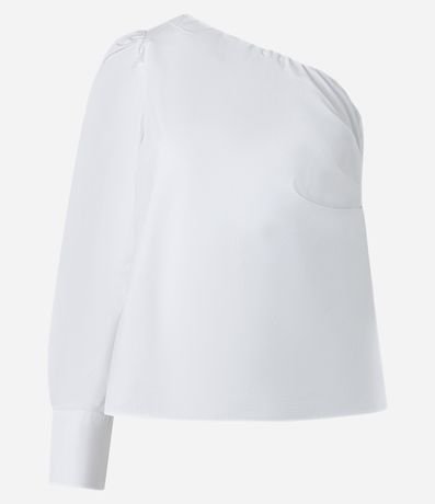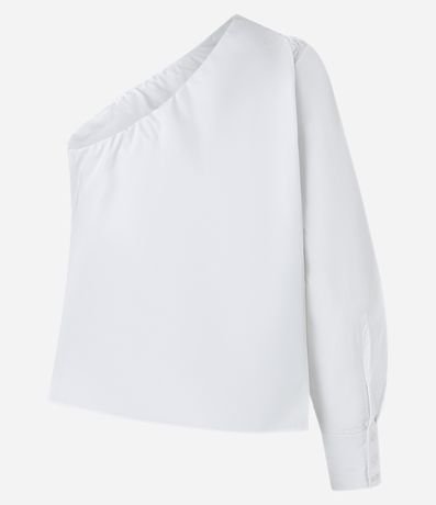 Blusa Ombro Só em Tricoline e Manga Longa