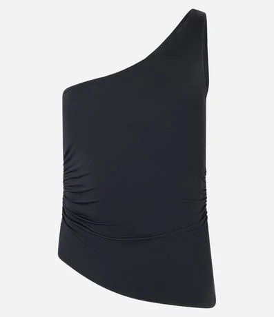 Ref: Blusa de microfibra sem estampa. A peça tem um ombro só e decote e barra assimétricos.