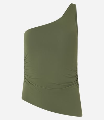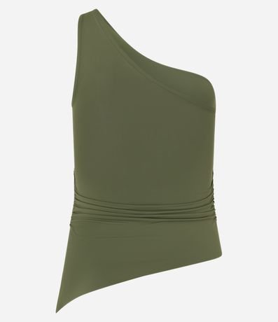 Ref: Blusa de microfibra sem estampa. A peça tem um ombro só e decote e barra assimétricos.