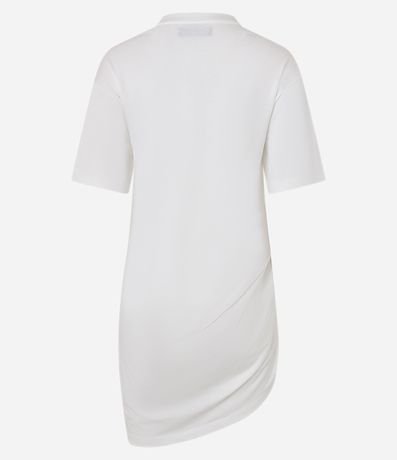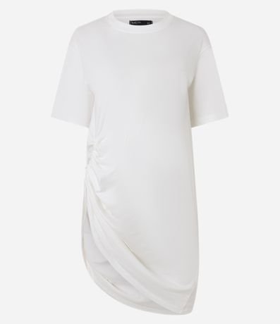Ref: Blusa oversized com manga curta, confeccionada em algodão mais sustentável em boas práticas ambientais, sem estampa e com drapeado na lateral.
