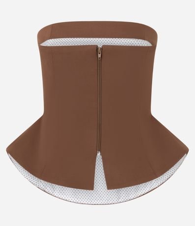 Ref: Blusa peplum sem manga alfaiatada com decote reto, com recortes. Peça com fechamento nas costas por zíper, detalhe de recortes, forro com estampa poá e fenda.