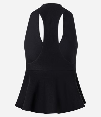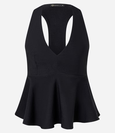 Ref: Blusa feminina confeccionada em viscose certificada através de boas práticas ambientais. Possui decote profundo em V e alças largas, modelagem ajustada no busto e cintura marcada, abrindo-se em um peplum estruturado com caimento fluido.