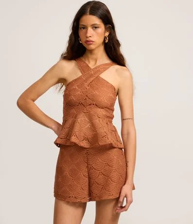 Ref: Blusa Peplum com Efeito Crochê em Textura Transpasse