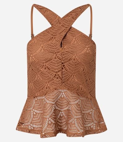 Ref: Blusa Peplum com Efeito Crochê em Textura Transpasse