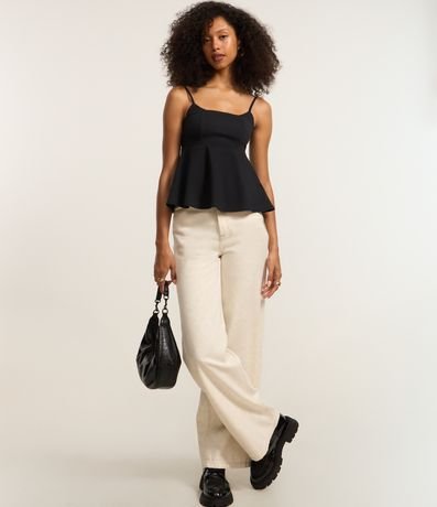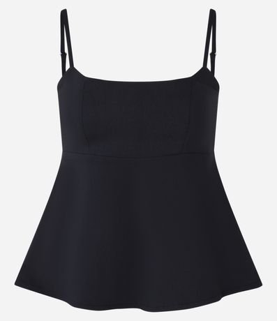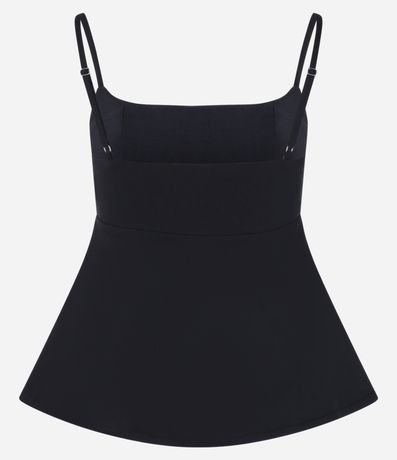 Ref: Blusa peplum com alcinha fina regulável, confeccionada em bengaline, recortes no busto e produzida com viscose certificada mais sustentável.