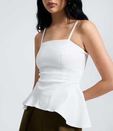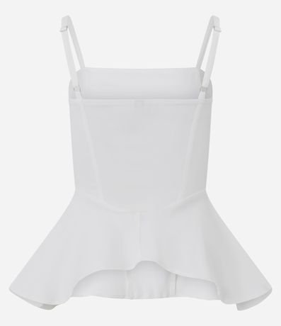 Blusa peplum em bengaline com modelagem ajustada e alças finas que valorizam o visual feminino. O decote reto e o caimento estruturado garantem elegância ao look, ideal para compor produções modernas e versáteis. Confeccionada em viscose certificada, unindo estilo e responsabilidade.