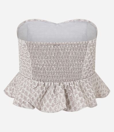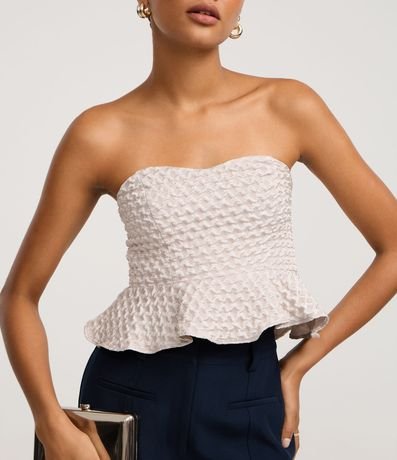 Ref: Blusa peplim, sem mangas, confeccionada em jacquard, com decote coração, lastex nas costas e textura matelassê. Este produto foi fabricado através de processos mais sustentáveis, sendo ambientalmente mais responsável.