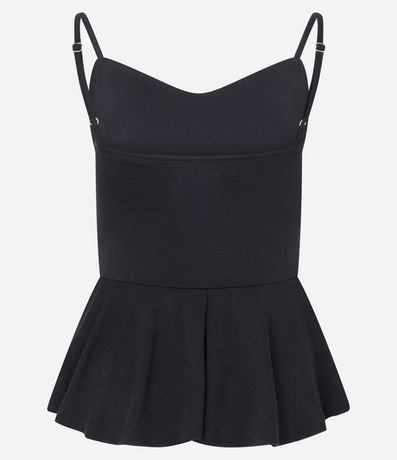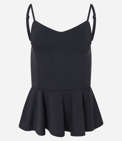 Ref: Blusa feminina sem manga confeccionada em ponto roma liso, com alças finas ajustáveis e decote levemente curvado. Possui recorte acinturado e barra em modelagem peplum, trazendo leve volume e ótimo caimento. Ideal para criar composições modernas com estrutura e conforto.