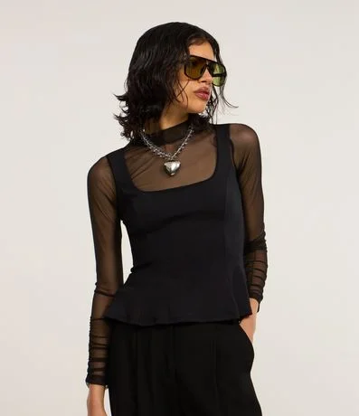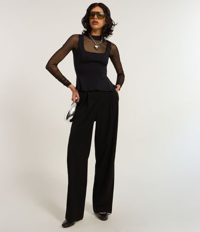 Ref: Blusa peplum confeccionada em ponto roma com alça larga e decote quadrado.