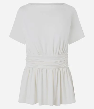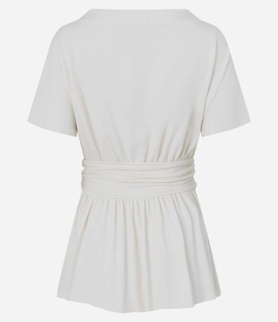 Ref: Blusa feminina confeccionada com viscose mais sustentável. Possui mangas curtas, decote arredondado, recortes na cintura com franzido e peplum estruturado.