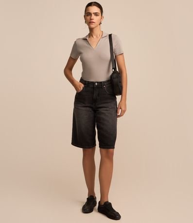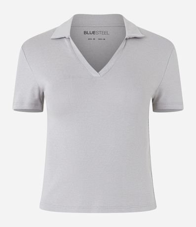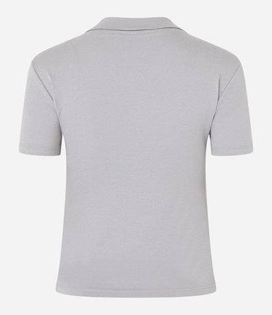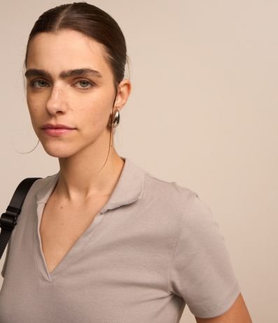 Ref: Blusa cropped, polo, em meia malha, sem estampa e confeccionada em material mais sustentável.