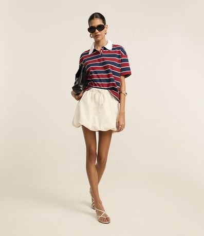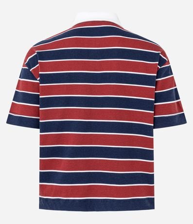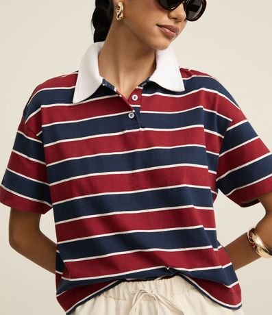 Ref: Blusa feminina confeccionada em algodão mais sustentável através de boas práticas ambientais, no modelo polo. Possui gola contrastante, com botões, manga curta e estampa de listras.