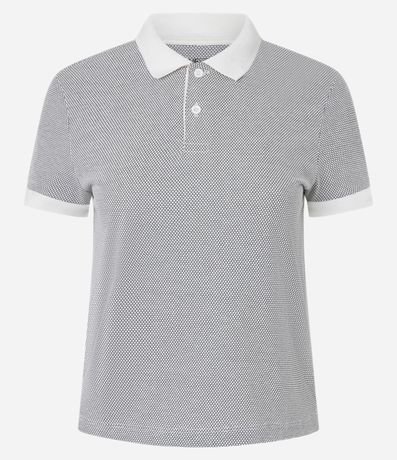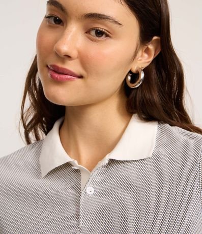 Ref: Blusa polo feminina confeccionada em algodão Certificado bci e Boas Praticas Ambientais, com textura favinho, gola contrastante, mangas curtas e fechamento por botões. Visual clássico com toque moderno e processo sustentável.