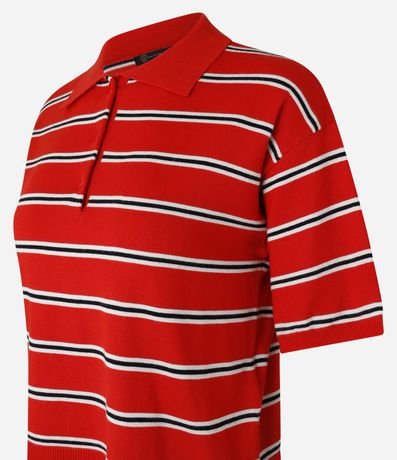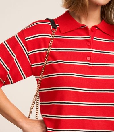 Blusa Pólo em Tricô com Abotoamento e Estampa Listrada