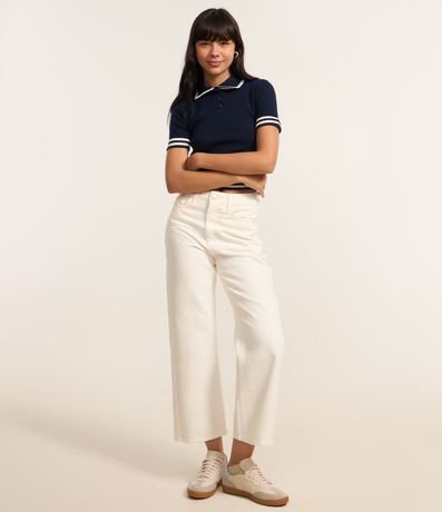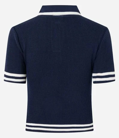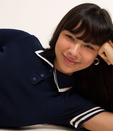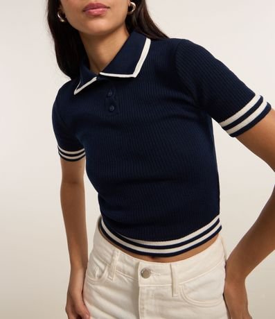 Blusa Polo em Tricô com Listras Contrastantes