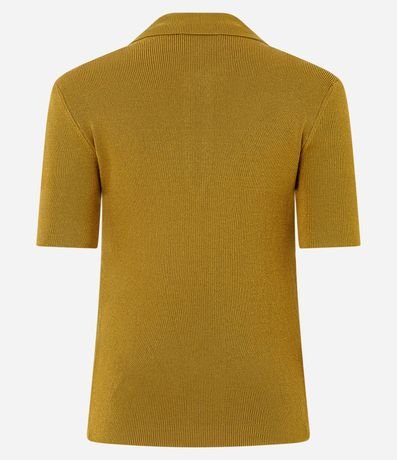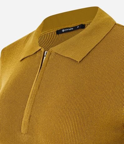Blusa Polo em Tricô com Manga Curta e Zíper Frontal