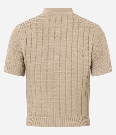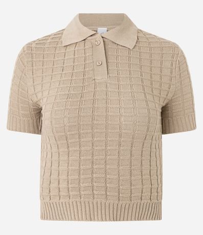 Ref: Blusa feminina confeccionada em tricô texturizado, peça no modelo polo com gola colarinho, abotoamento, manga curta ajustada e barra ajustada.