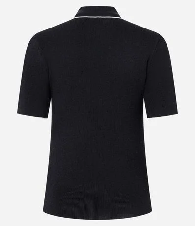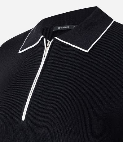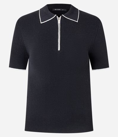 Ref: Blusa feminina confeccionada em tricô através de boas práticas ambientais. Possui gola polo estruturada, mangas curtas, fechamento frontal por zíper no decote e viés contrastantes, garantindo visual moderno e versátil para compor looks casuais com elegância.