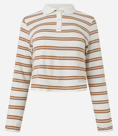Ref: Blusa polo feminina com mangas longas, golinha contrastante e botões no peitilho.