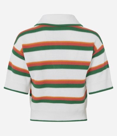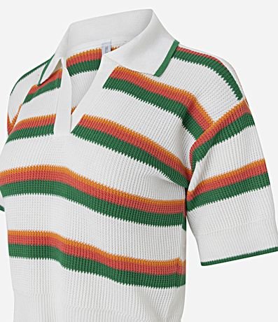 Ref: Blusa em tricot com mangas curtas e gola polo, padronagem listrada em cores vibrantes. Modelo confortável com caimento perfeito, ideal para compor looks casuais. Confeccionada com boas práticas ambientais, garantindo estilo e responsabilidade.