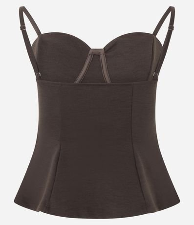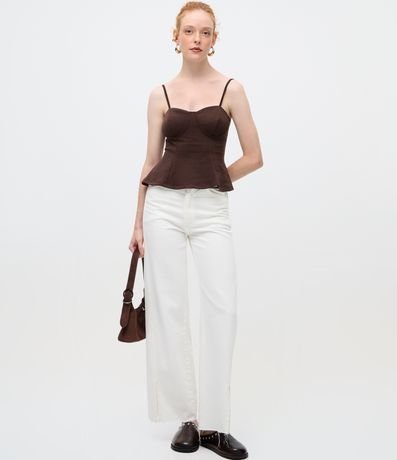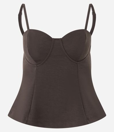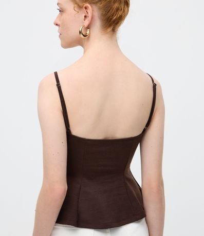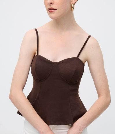 Ref: Blusa feminina em algodão confeccionada em malha ponto roma. Possui alças finas ajustáveis e decote estruturado, recortes estratégicos que definem o busto e modelagem levemente evasê abaixo da linha do peito.