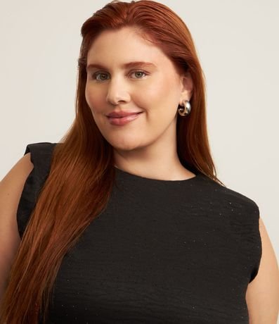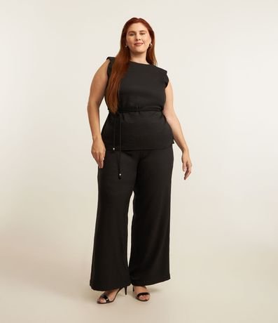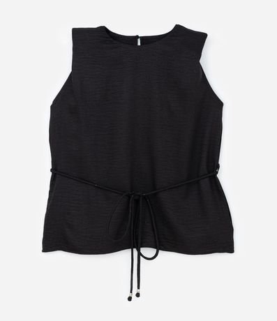 Blusa Regata Alongada em Crepe com Brilhos e Cinto de Amarração Curve & Plus Size