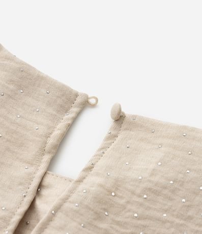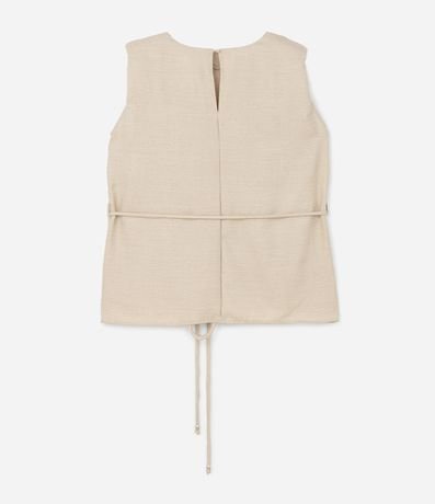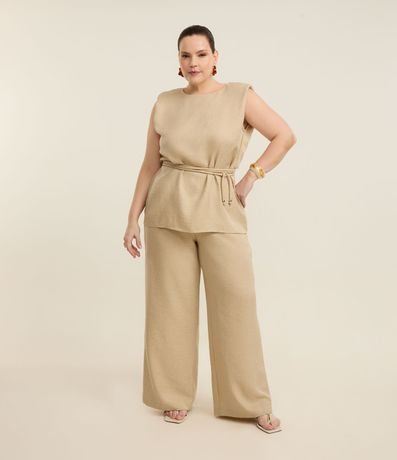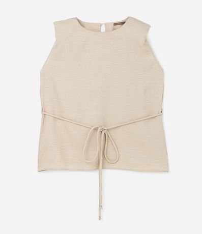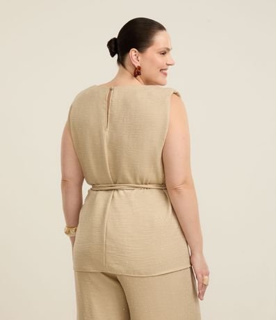 Ref: Regata feminina Curve & Plus Size confeccionada em crepe com boas práticas ambientais, peça alongada com gola redonda, aplicação de brilhos e um cinto fino de amarração.