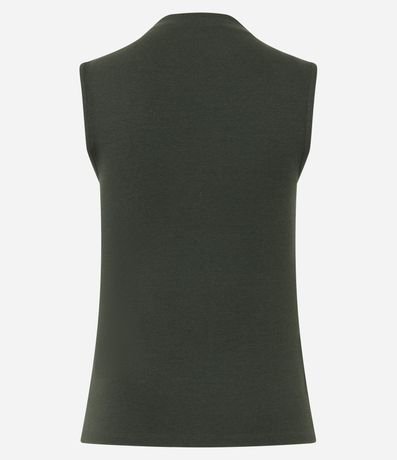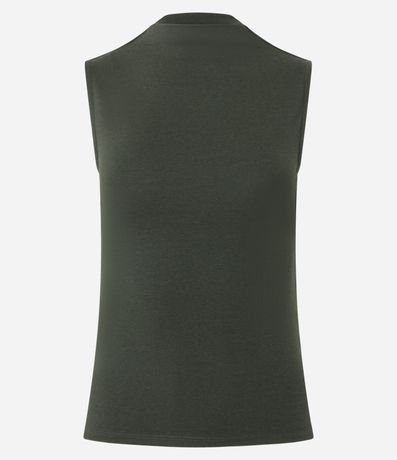 Blusa básica feminina confeccionada em algodão mais sustentável, no modelo regata. Possui gola alta, sem mangas e sem estampa.